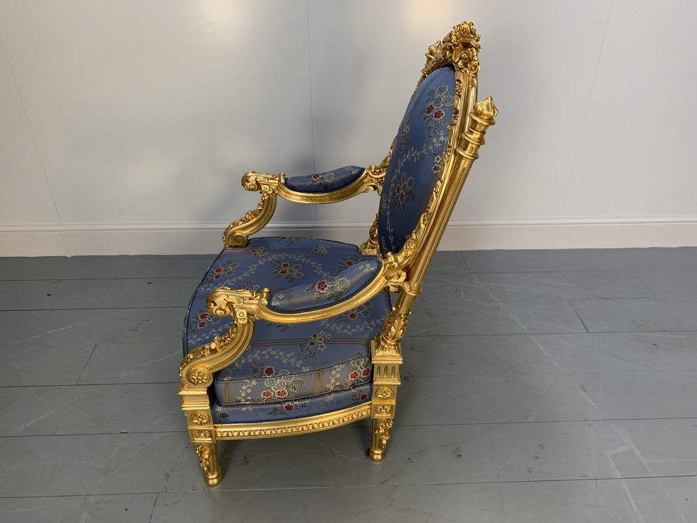 That said, on offer on this occasion is a fabulously-presented suite of 4 of the most sensationally-detailed and expertly-executed fauteuil armchairs in a baroque/rococo style, dressed in a floral-patterned silk fabric and with ornate carved-detail in gilt.