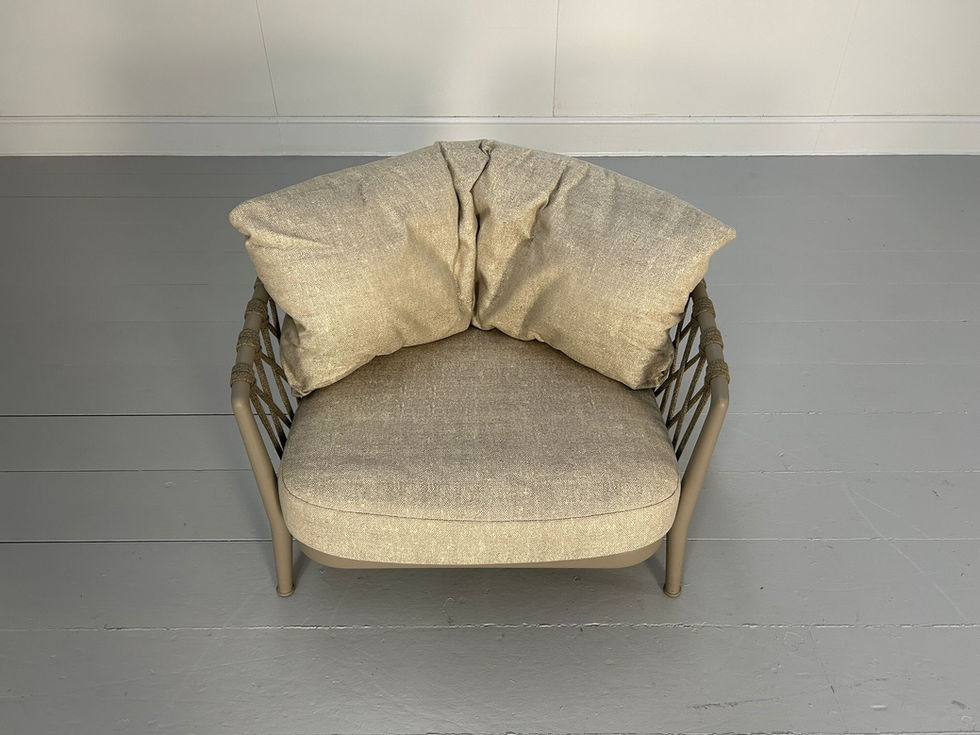 The Erica collection is widely regarded as one of the most refined contemporary outdoor ranges available. The sculptural tubular frames are paired with expertly woven backs and generously proportioned cushions, offering both architectural clarity and exceptional comfort.