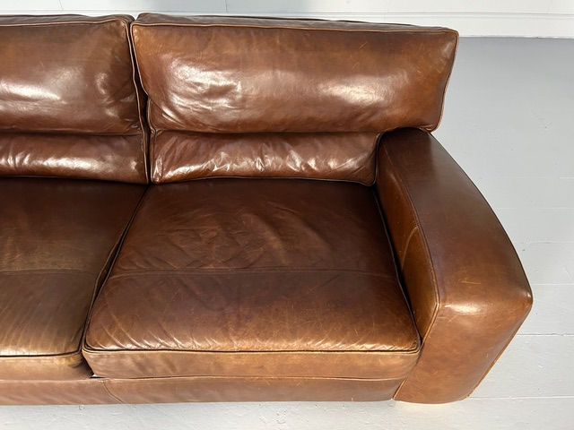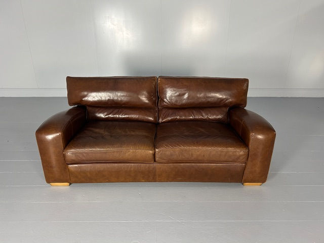 Upholstered in their rich brown "Mustang" leather, the piece has a warm, lived-in character that only improves with age. The natural depth of tone enhances the sofa’s strong, clean lines while keeping the overall look relaxed and approachable — equally suited to classic interiors or more contemporary spaces needing warmth and texture.