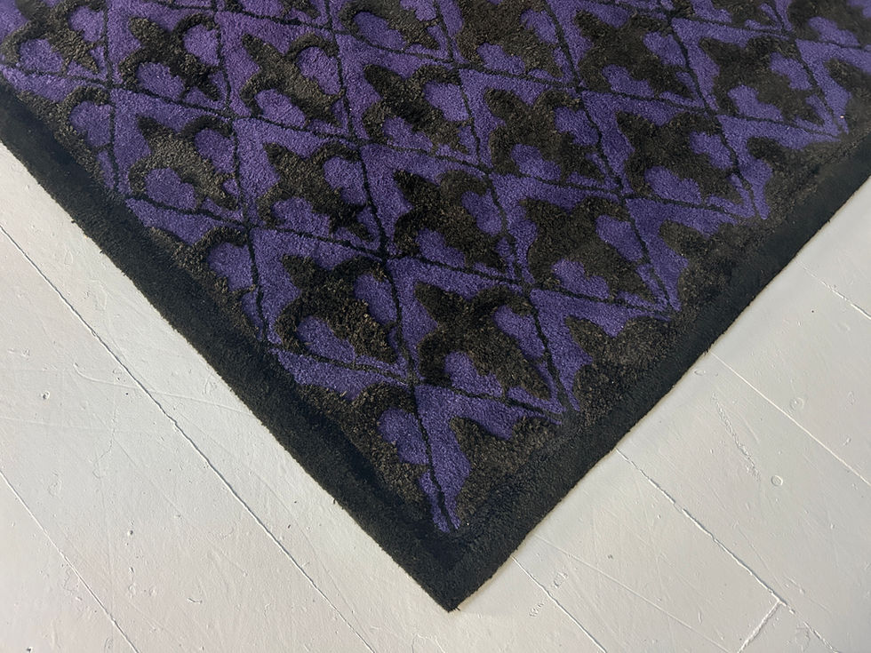 Pair of Modern Design Black and Purple Motif Large Rugs in Wool - 3m x 4m