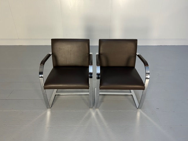 Pair of Knoll Studio "Brno" Flat-Bar Armchairs in Brown Leather