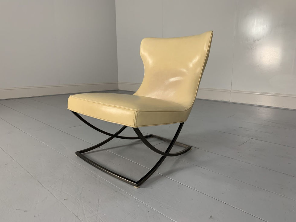 On offer on this occasion is a rare identical pair of “Paloma” occasional-chairs from the world renown Italian furniture house of Baxter, dressed in a sublime warm-cream leather, and with dark-bronze framework.