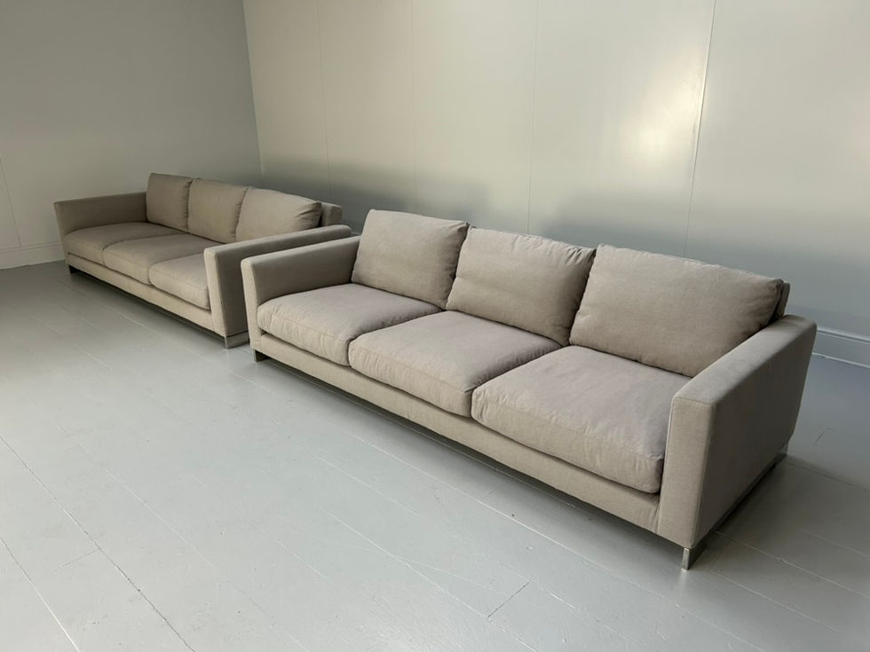 Pair of Molteni & C “Reversi” 4-Seat Sofas – In Pale Grey Linen