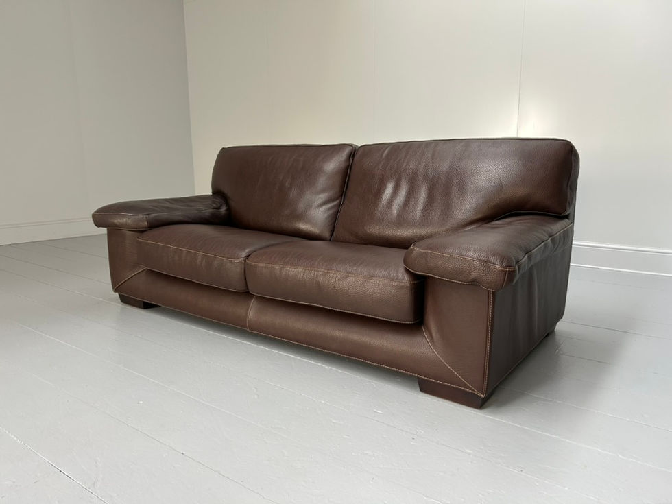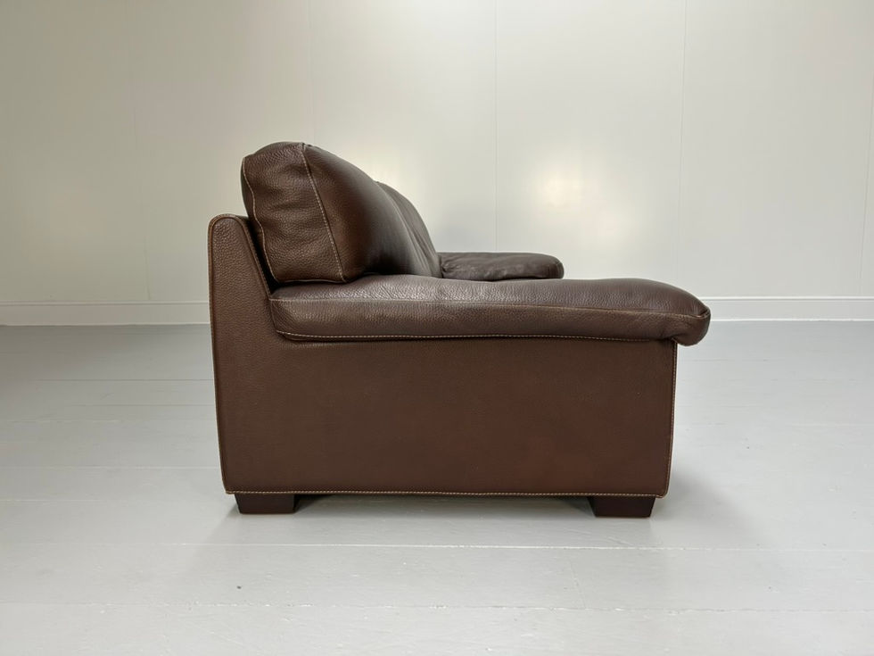 On offer on this occasion is something capable of being the last pair of sofas you ever need buy, it being a gorgeous, sensationally-proportioned identical-pair of “Ascot” Sofas from the world renown French furniture house of Roche Bobois, benefitting from the most stunning, thick dark-brown leather upholstery.