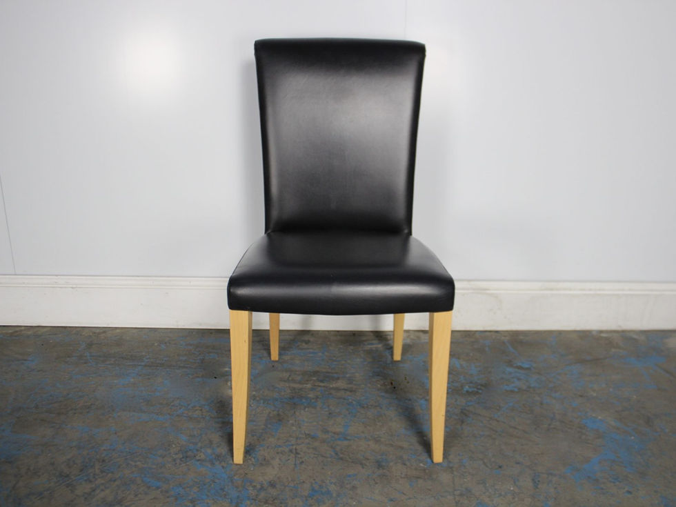 A beautifully-presented 10-piece suite of “Vittoria” Dining Chairs, all dressed in a tactile, accommodating “Pelle Frau” Leather in Black, and with Oak Frame and Legs.