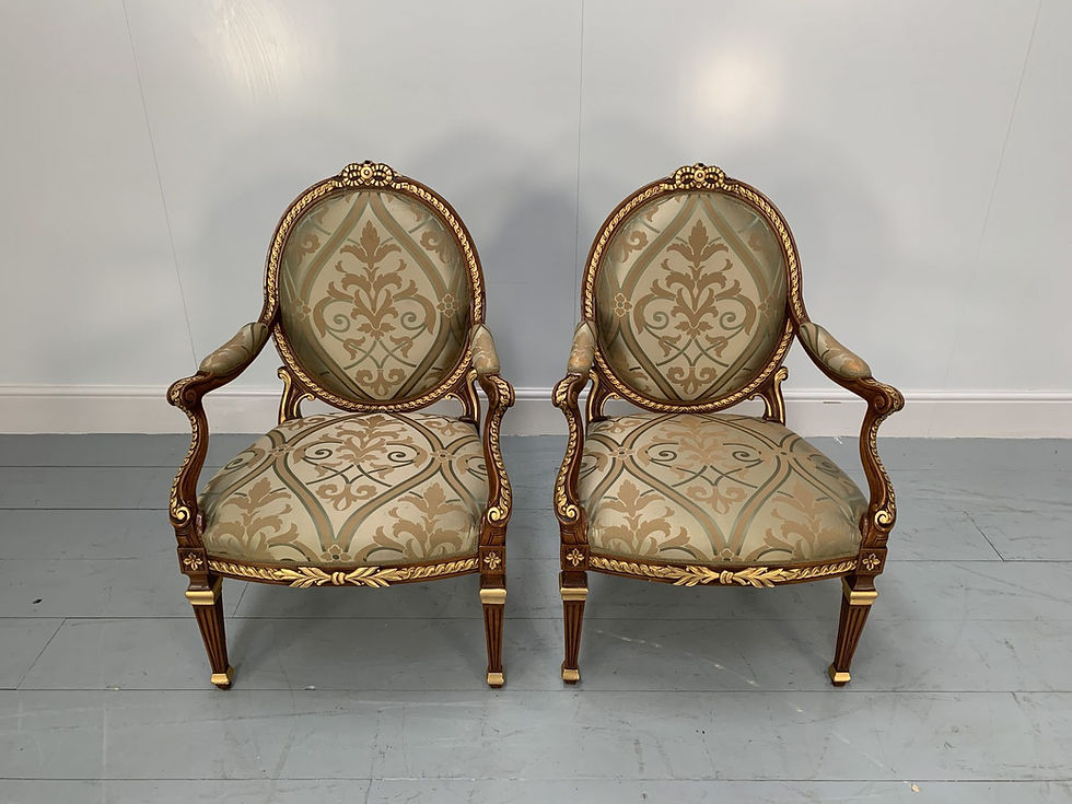 Asnaghi Fauteiul Baroque Rococo Armchairs in Floral Silk and Gilt