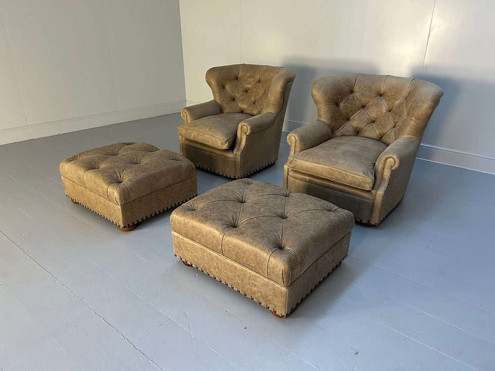 Pair of Ralph Lauren “Writers” Inspired Armchairs & Ottomans In Vintaged Walnut