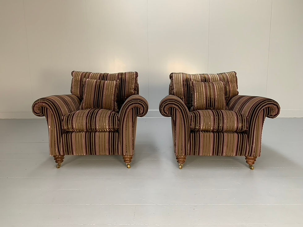 Pair of Duresta “Watson” Armchairs – In Velvet Stripe Fabric